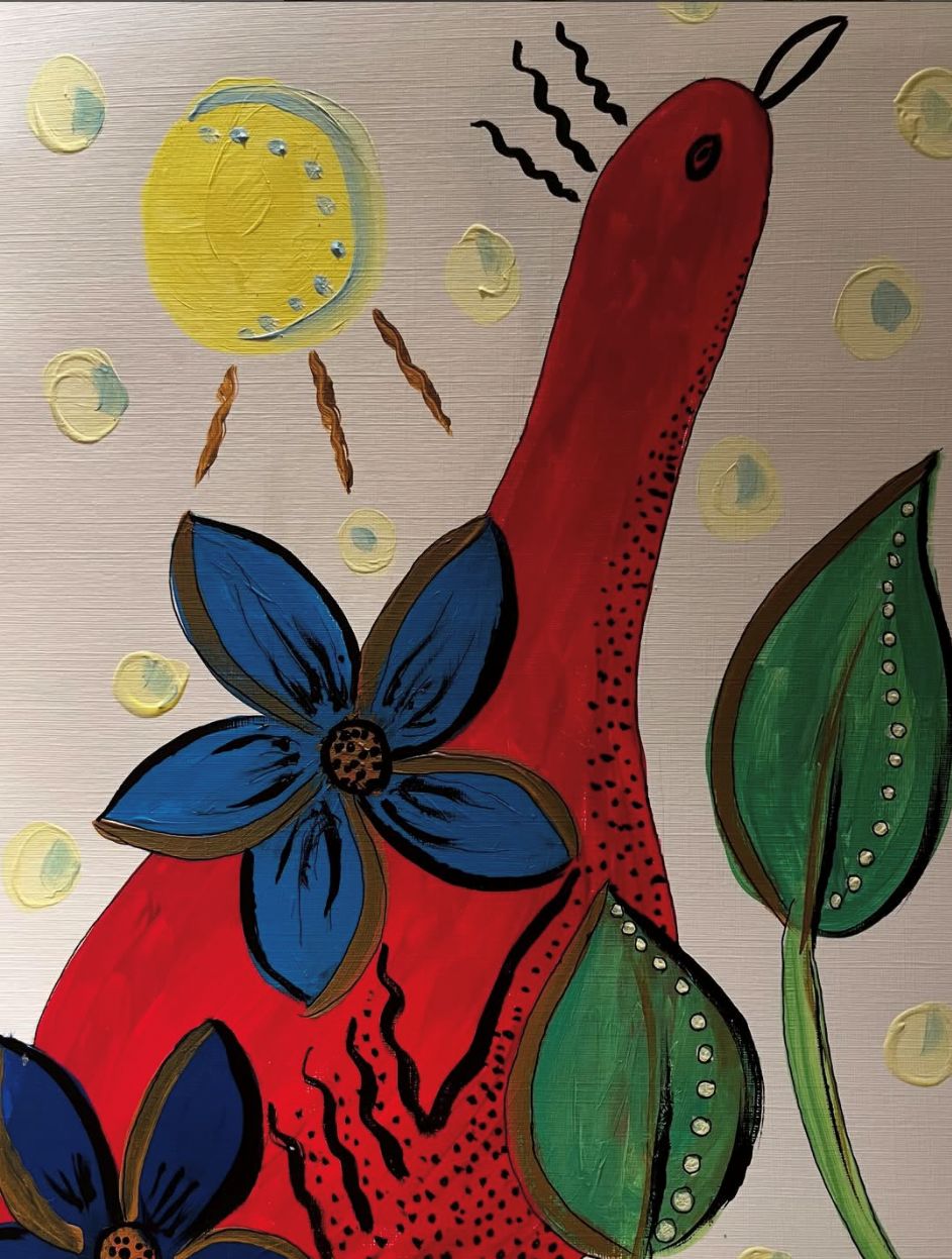 I am an interdisciplinary artist. I use a mix of fabrics, cotton, linen, wool felt, denim, silk- anything goes. The techniques differ; embroidery by hand/machine, collage, painting.