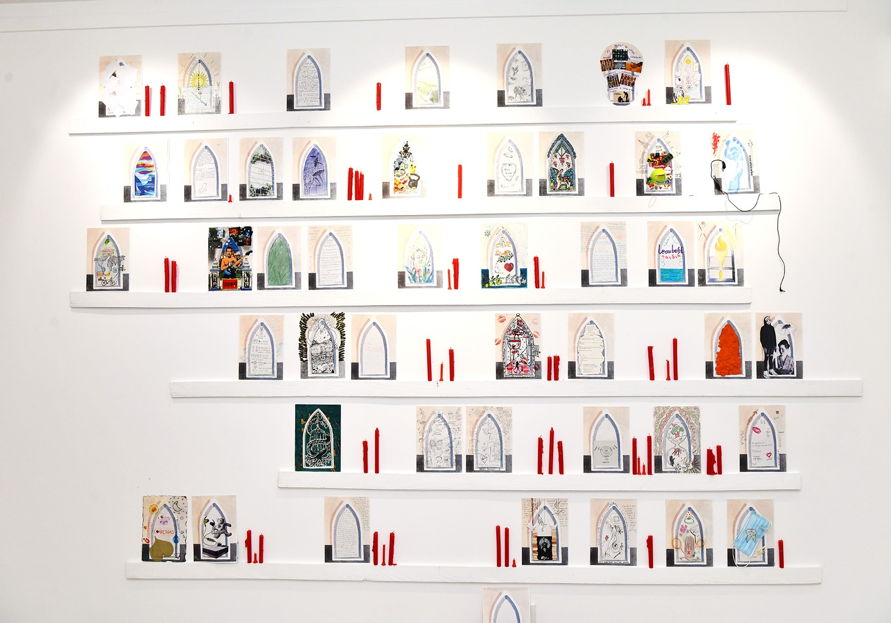 Martos’s work centers on portraiture, critically engaging with selfhood, spirituality, and cultural identity. Primarily a painter, she also incorporates artistic objects, collective projects, performance, and installations into her practice. Using found objects, she transforms reused materials through narrative shifts—redefining their original meaning and adding new layers. This process elevates the concept of waste into a personal and symbolic dimension.