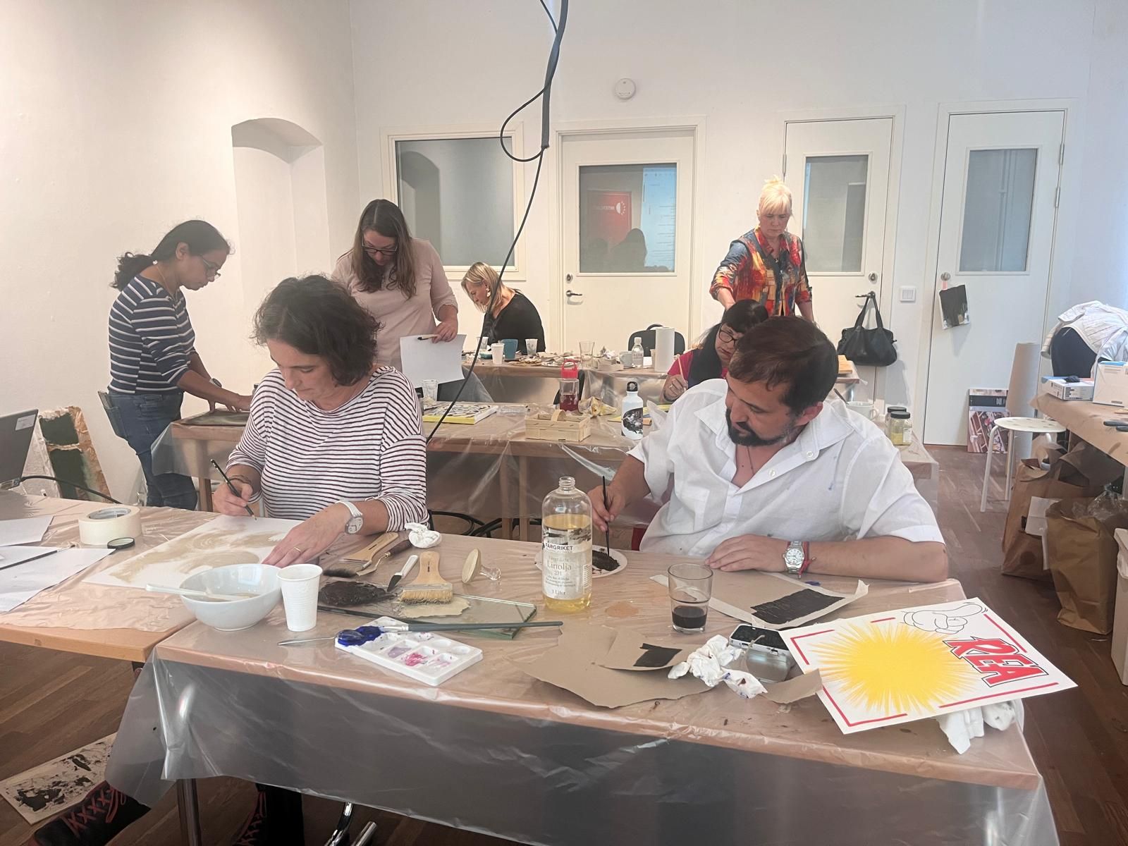 Participants experimented with natural pigments, recycled textiles, and eco-friendly binders, combining theory and practice.